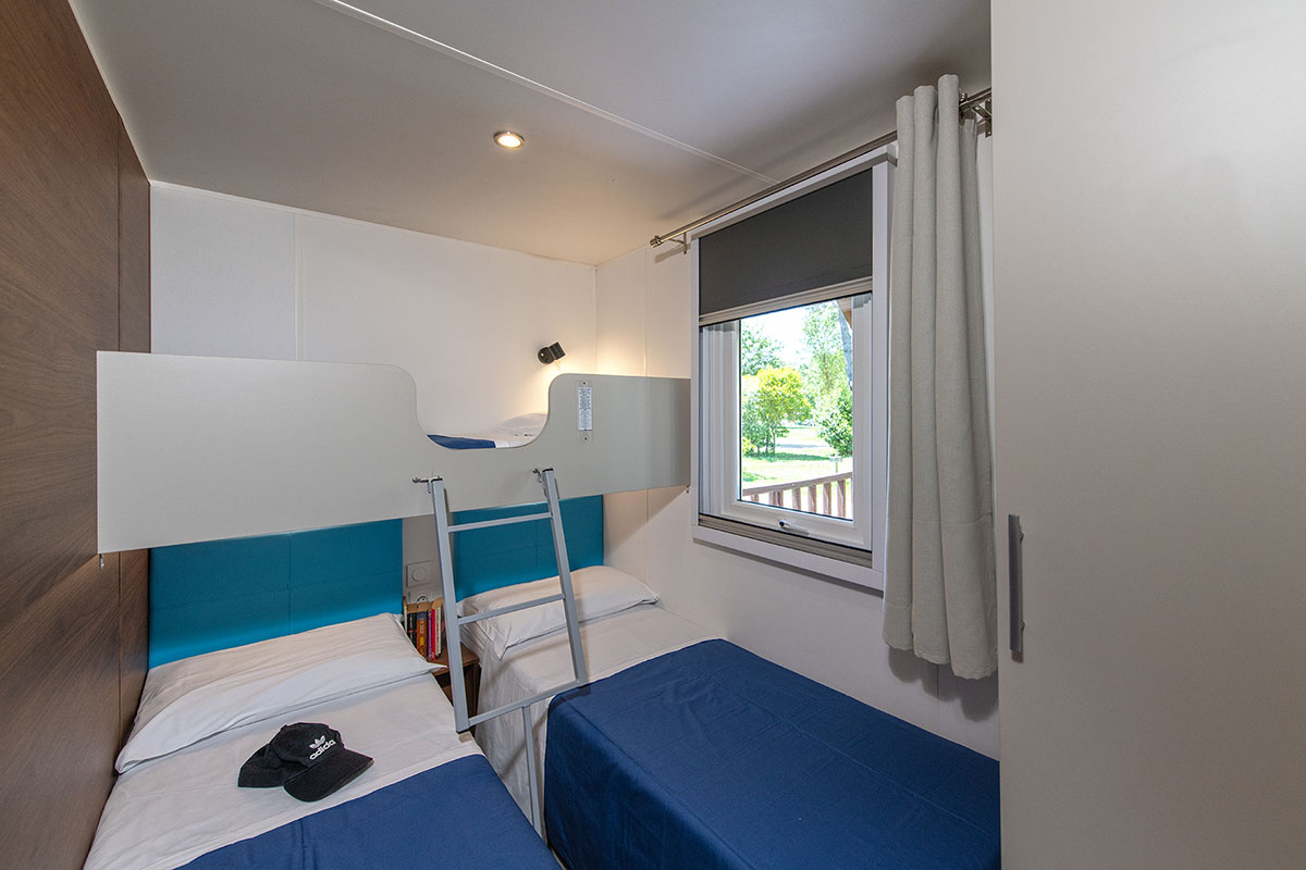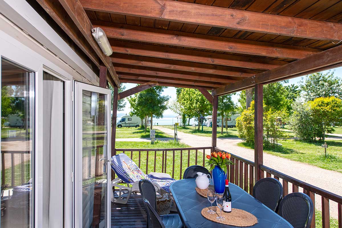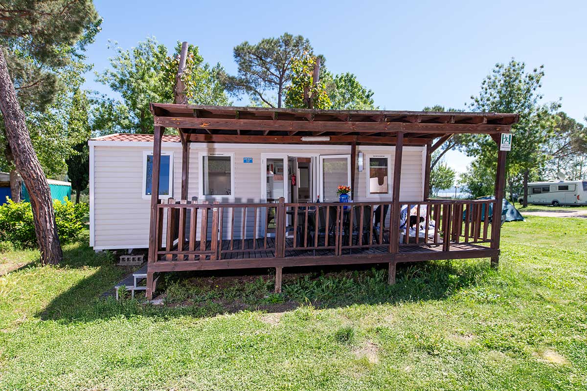 Le nostre Case Mobili Super Deluxe sono tutte accessoriate, fino a 6 persone (4+2), tutte complete di veranda in legno, circa 40 mq con 1 camera matrimoniale, 1 camera con 2/3 letti, 1 soggiorno con angolo cottura e divano letto, bagno, doccia, riscaldamento, TV-SAT, aria condizionata (su richiesta e a pagamento) e mobili da giardino tra cui 1 tavolo, 6 sedie, 2 sdraie e 1 ombrellone.